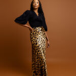 Model measurements in inches :Waist 27, Hips 40, Height 5’9″