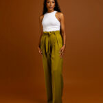 - Model measurements in inches: Waist 30, Hips 45, height 5’6”