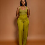 - Model measurements in inches: Waist 30, Hips 45, Height 5’6’’